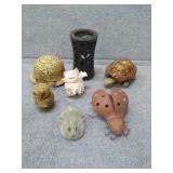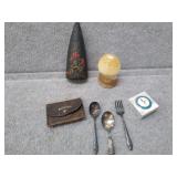 Flat of Misc. Items - Silver-plate, Marble ? Mushroom, Leather Token Purse, & More |