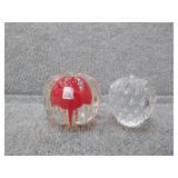 Crystal Glass Paperweight by Dying Art Glassworks (WV) - 2 3/4" H, 2 1/2" D & Crystal/Red Glass Paperweight - 2 1/4" H, 2 3/4" D |