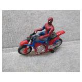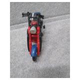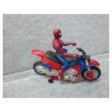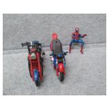 2 Spider - Man Motorcycles & 1 Spider-Man Action Figure - 1 tire chewed up |