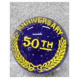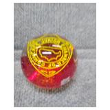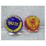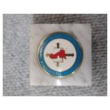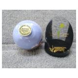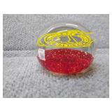 2 Glass Paperweights - Gentile Glass Company (Star, WV) Blue 50th Anniversary 2 3/4" H, 3" D, Red & Yellow Junior Chamber of Commerce |