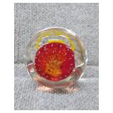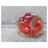 Orange Floral Glass Paperweight - 1 1/2" H, 2 1/4" D |