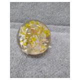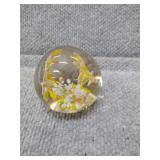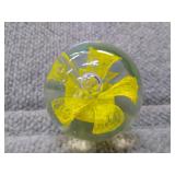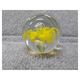 Yellow Floral Glass Paperweight - 2 1/2" H, 2 1/4" D |