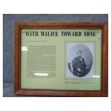 Abraham Lincoln "With Malice Toward None" 2nd Inaugural Address - Framed 11 1/4 x 14 1/4 |