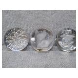 Snowflake, Flower, & Kitten Glass Paperweights - All 3 1/2" Diameter |