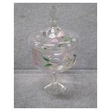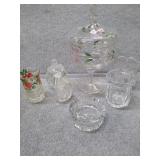 Flat of Misc. Glassware - Hand Painted Covered Candy Dish & Small Vase |