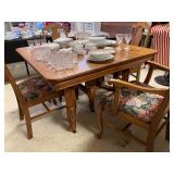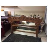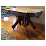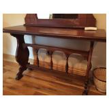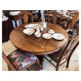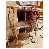 Antique furniture will include beautiful Oak mirrored buffet and china cabinet-each highly carved and decorated, Square 48” oak table with four 12” leaves and triple base, Eight oak dining/kitchen chairs, Round tiger stripe oak pedestal dining table, Victorian parlor tables-walnut and marble tops, Reticulated plant stand with onyx top, Embossed three tiered metal stand, Sofa with wood trim, Slant front desk, Sonora wind up record player in cabinet with speaker, Curved arm rocker with ottoman, Ornate metal bench with high arms, Southern Calendar Fashion clock-movement by Seth Thomas, Ansonia key wind mantle clock, Hibberd Spencer & Bartlett folding wash tub stand with ringer, Eastlake framed dresser mirror, Pair Duncan Phyfe style night stands, Upholstered arm chair, Farmhouse style pine narrow table, Architectural wrought iron fence sections, more….