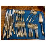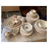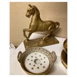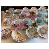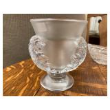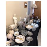 Antiques and collectibles include gorgeous cut crystal punch bowl on stand and many other cut crystal and glass pieces, Lalique St Cloud acanthus leaf vase, Fine bone china and other dinnerware sets including Royal Doulton ’Tazza’, Haviland Limoge, Eschenbach ’Shirley’ pattern, H & Co-Bavaria, Pair of Cambridge Crown Tuscan keyhole ball vases, Hand painted plates and bowls, Figurines, Wallace sterling flatware ’Wishing Star’ pattern-service for twelve, Pairpoint brides basket-nice, Milk glass rabbit candy dish, Statuary, Flower frog, Mustache cups, Tiffin-Franciscan ‘Minton Clear’ gold encrusted stemware, Hand blown cut glass decanters, Demitasse cup and saucer collection, Antique books, Fostoria Americana round and square cake stands with rum wells, Brass eagle on branch, Austin sculptures, Majolica baskets, Milk glass banana dish, Candlewick divided dish, Pottery, more…..