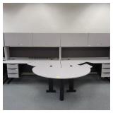 (2) 3-DRAWER WORK STATIONS/DESKS WITH STORAGE CABINETS 12ft X 6.5ft X 68"