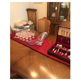 Beautiful French dining room set table , 6 cane back chairs, 2 leafs,& breakfront, 6pc Dinette set bamboo style round table and 5 chairs, Rom Webber designer burled walnut master bed room set dresser, pr. Night stands, Armoire, Vintage bun top walnut china cabinet, kidney shape mahogany desk and chair, 2 Iron patio sets, Kenmore stainless grill, Work bench, painted child’s desk and chair, painted knee hole desk and gossip bench, craftsman mower, ladders, 4 pc. Folding chairs, 2 air conditioners, sterling, and silver plate flat ware, Czechoslovakian china set, Swedish crystal stem ware, Rosenthal center bowl, reverse paintings on glass, plus sign paintings on board and canvas, lingerie chest, vintage oak dresser, Iron framed glass coffee table, bric/brac, ladies clothing, garden tools, kitchen wares and so much more.
