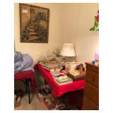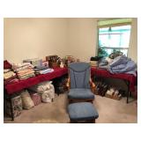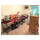 Oodles of Estate Jewelry Clean Bed: Orthopedic Queen Massive Cast Iron Cauldron, Vintage Copper Pot Oak Dining Table w/4 Chairs/Leaves, Floral Sofa End Tables, Cuckoo Clock, Blue Recliner, Coral of Cows Politically Correct Faux Furs, 3 Jammed Closets (s~m) Cast Iron Black American, Many Stained-Glass Lamps 2 Large Jewelry Chests, 2 Dressers, Upholstered Chair 2 Clean Microwaves, Boxed Flatware, Large Corelle Dish Set Oodles Vintage Pyrex, Guardian Broiler, Moonshine 2 Gallon Jug Massive Iron Door Gate (you take it down), Tables of Nice Linens Sewing Notions, Lamps, Minks, Office Needs, Chemicals, Knife Sets TV Table Set, Bar Stools, Quilt Rack, Bassett Coffee Tables Armoire, 2 Chest Drawers, Glider, Huge Jewelry Cabinet Pressure Washer, Patio Set, Ladders, Vacuums, Holiday 2 Entertainment Units, Large Red Vintage Club Pot Set Oreck Vacuum, Tables Overflowing NIB Shoes (8½~9) Wooden Coffee Grinder, Nice Wooden Drop Tables Time to purchase a new clock, Working Dryer Kitchen Loaded w/everything you need to cook me a Wonderful Dinner!! cece