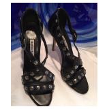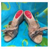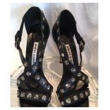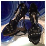 Designer shoes galore! Christian Louboutin Jute wedges Louboutin sandals / slides / flip flops Wiesner Cigarette Glam Case Miriam Haskell Sets Joan Rivers Art Glass Butterfly Brooch Minnie Mouse bakelite Scottie dog bakelite Salt & Peppers