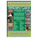 This 2nd Auction will consist of Antiques, Primitives, pottery, glassware, advertising, Rail Road items, pocket watches, cast iron, enamel ware, cook stoves, ice box, pie safe, jelly cupboard, hall tree, Hoosier cabinets, quilts, art, toys, signs, collectibles, depression glass, folk art, lamps, wagon wheelst, farm tables, Shabby Shic, primitive decor, ephermia, Coke clock, country store items, country store decor, blue cobalt decorated crocks, churns, Southern & Northern pottery, pedal cars, Mack truck pedal car, milk bottles, Local adverting items, parlor stoves, early anvils, Lance jars, old windows, farm house & primitive doors, early fireplace mantles, cast iron bath tubes, farm chairs, metal porch chairs, gas & oil signs, partial visible gas pump, Americana, and pretty much anything antique related! NCAL #8082 NCAFL #9565 |