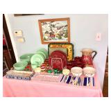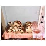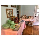 China Vintage Franciscan Ware Large China Set, American Sweetheart, Glass Purses, Fire King, Jade Ware, Fiesta ware Pitchers, TONS OF Cat Tail China, Pink Depression Glass, Modern Dishware of Various patterns, AND SO MUCH MORE!