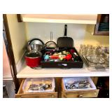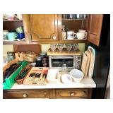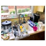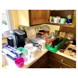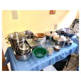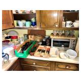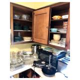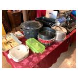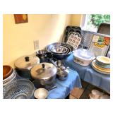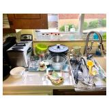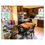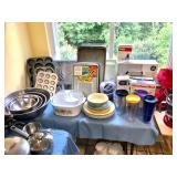 Kitchen Wares Vintage Dinette Table with 4 chairs, Kitchen Aid Stand Mixer 325 Watt Artisan, GE Panini Grill, Cuisinart Pizzelle Maker, Kitchen Aid Pasta Roller Attachment, Vintage Pyrex Bowls, Modern Pyrex Bake ware, Bamix Immersion Blender, Bake ware, Mixing Bowls, Farberware, Vintage, Pots, Kitchen aid Pots and Pans, Modern Calphelon Pots and Pans, Several Vintage and Modern Flatware Sets, Pioneer Woman Cast Iron Dutch Oven, Cast Iron Skillets, Curo-Prox Digital Deep Fryer, Keurig, Several Boxes Cristal D'Arques, Corning ware, Corelle, Jello Brand Dessert Cups, Cuisinart Toaster Oven, AND SO MUCH MORE!