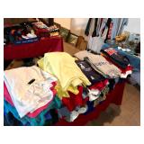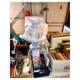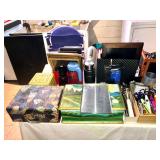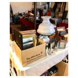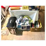 Basement Iron bird cage, dehumidifier, dozens of sports themed mugs, jarring supplies, luggage, Marshall Brodiens magic show, Folding tables, folding chairs, photo frames, tote bags, wall display units, two wooden chairs, two wooden upholstered chairs, one telephone stand, artwork, glassware, ceramics, art class, men’s and women’s clothing, scarves, sports themed hats, antique vanity with mirror, books on various themes including antiques, valuation guides, sports, vintage books, and more, Office supplies, bowling balls, kitchen wares, vintage kitchen ware, Oreck air purifier, electronics, antique trays, antique glassware, intimates, neckties, DVD player, DVD/VHS player, Wi-Fi range extender, Small bookshelf, small coolers, gone with the wind lamp, vintage lunch pail, golf travel cover, serving ware, candles, chalkboard, chip and dip set, electric skillet, deviled egg dishes, candle sticks, bases, vintage glassware, Glass and metal wind chimes, serving platters, wall clock, AND SO MUCH MORE!