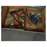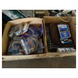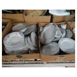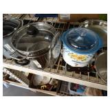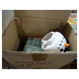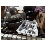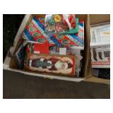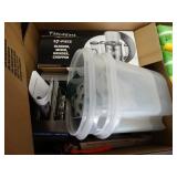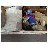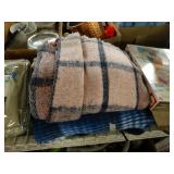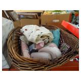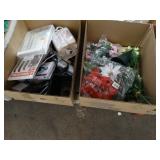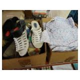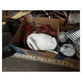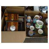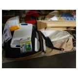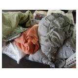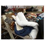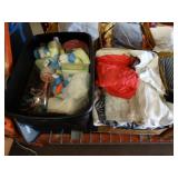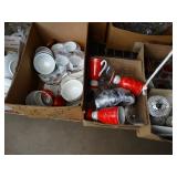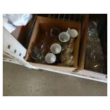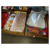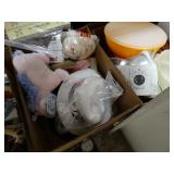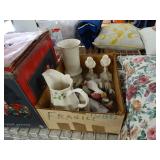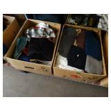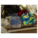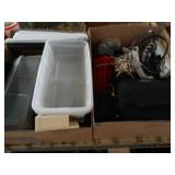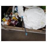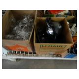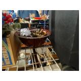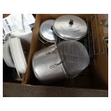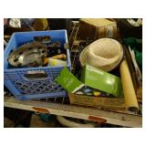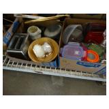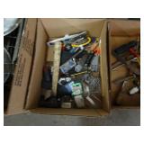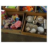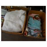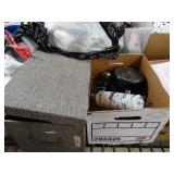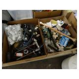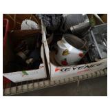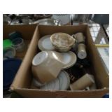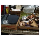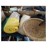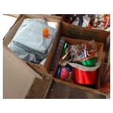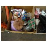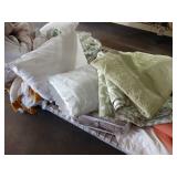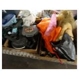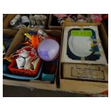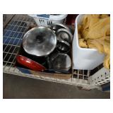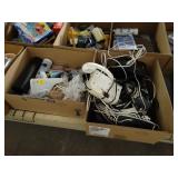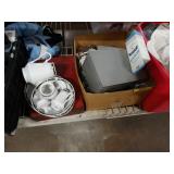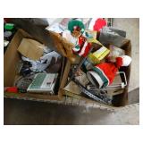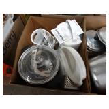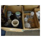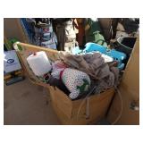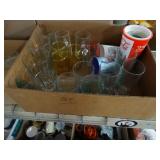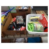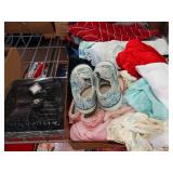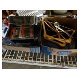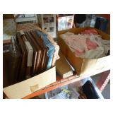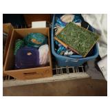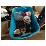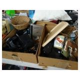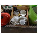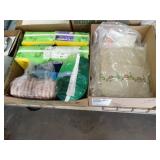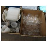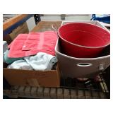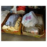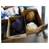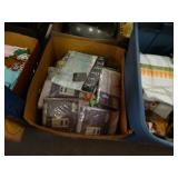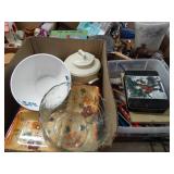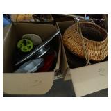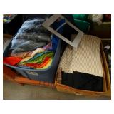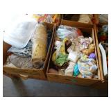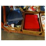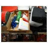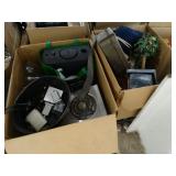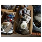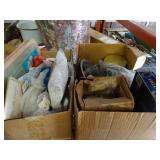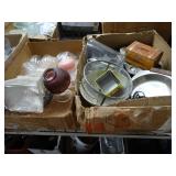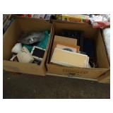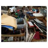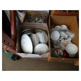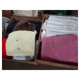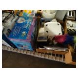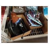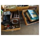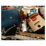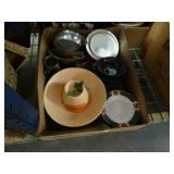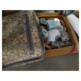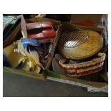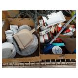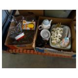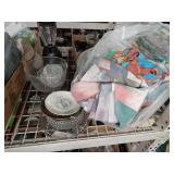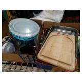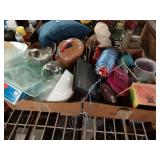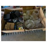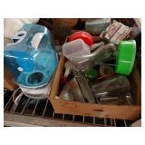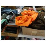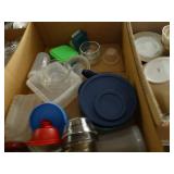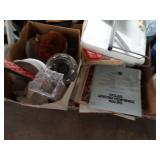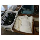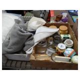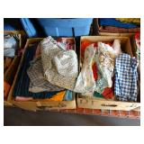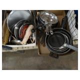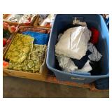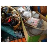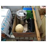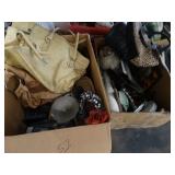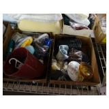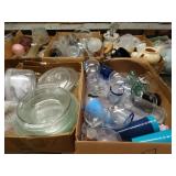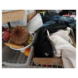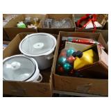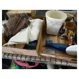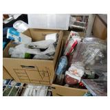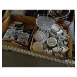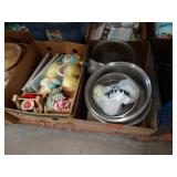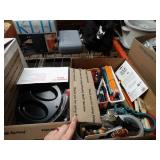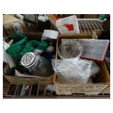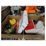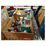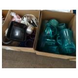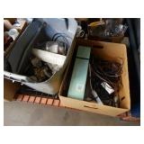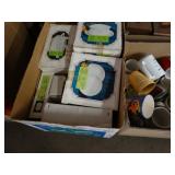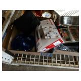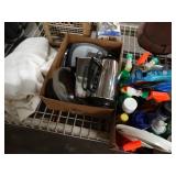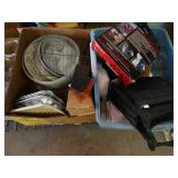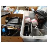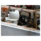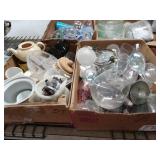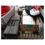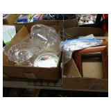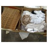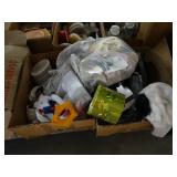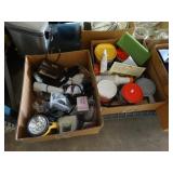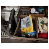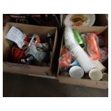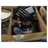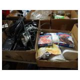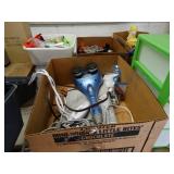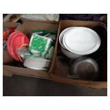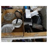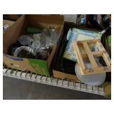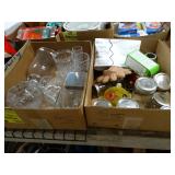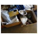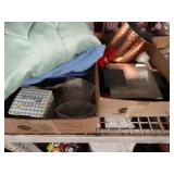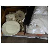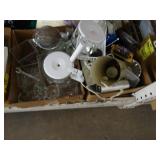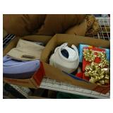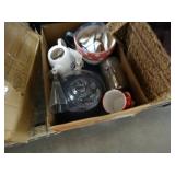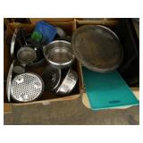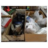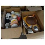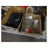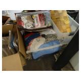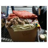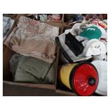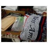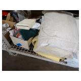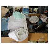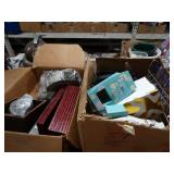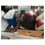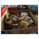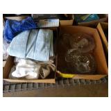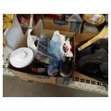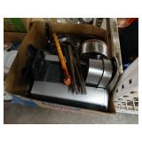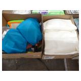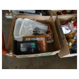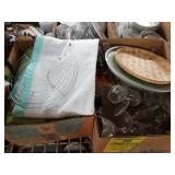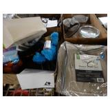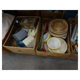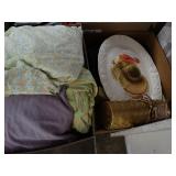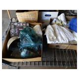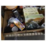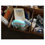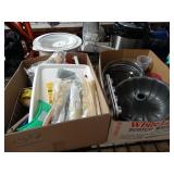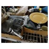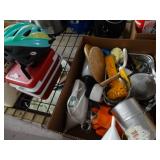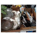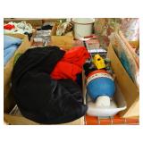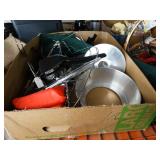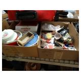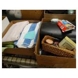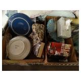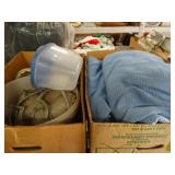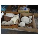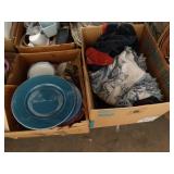Box lots with kitchenware, household items, tools, linens
