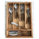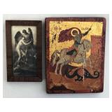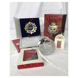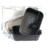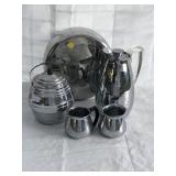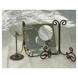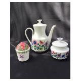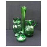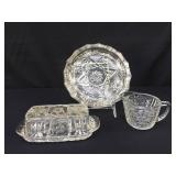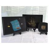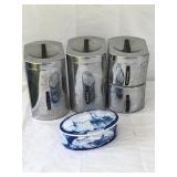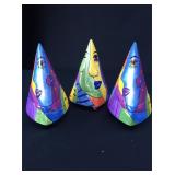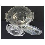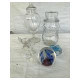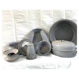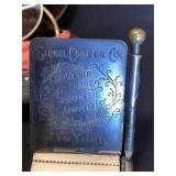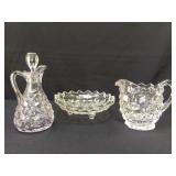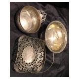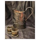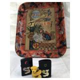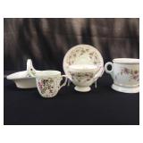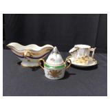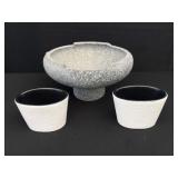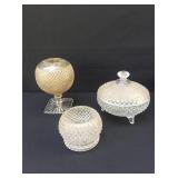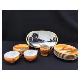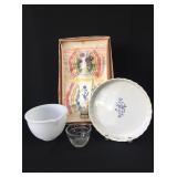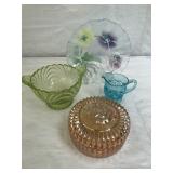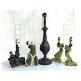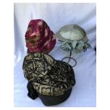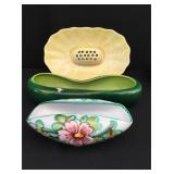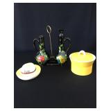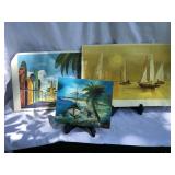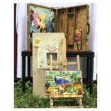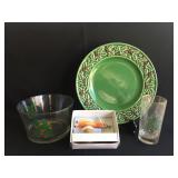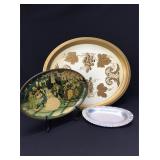 Pickup for both sales will happen Saturday August 1st from 10am-4pm, Sunday August 2nd from 10am-4pm and Monday, August 3rd from 10am-2pm. 750 Decorative wooden corner display shelves The first shelf is more intricately carved. It measures approximately 20 inches from top to bottom. There are some pieces chipped off in the bottom detail and a bit of veneer is missing on the back. The shelf is approximately 8 inches deep. Second s... 751 Standing wooden corner curio shelf Standing wooden corner curio shelf stands approximately 21 1/2 inches high. The shelves are 3 1/4, 5 1/2 and 8 1/4 inches deep. Shows some signs of wear on the bottom and there is a crack near the base on one side. Needs a little TLC. 752 Verichron clock and display shelf Verichron clock is a plastic clock face attached to a fiberboard backing. The octagonal backing measures approximately 14 1/2 inches across, the clock face is approximately 9 inches across. There is no glass on the clock face. Runs on batteries, not... 753 United Airlines Tiki decor lot Tiki decor lot features a 31 inch high tiki statue carved of Styrofoam. The base is inscribed Kauai, United Airlines. Show some signs of wear and needs a good cleaning. Base is approximately 9 inches by 9 inches. The lot also includes a tiki lamp wit... 754 Two natural wood walking canes The first cane is carved with a twisted pattern. It measures approximately 37 1/2 inches long. Has a rubber tip for stability. There is a crack where the hand holds the cane. The second cane is approximately 36 Inches long and has a rubber tip. There... 755 Rubel brass lantern lot Brass lantern lot includes a large brass lantern measuring approximately 19 inches high. It has a glass surround and removable oil container with wick. Signs of rust on the internal piece that the guts sit on. Also includes two brass candle lamps th... 756 Bright brass nautical lantern lot Bright brass nautical lantern lot includes two square oil lanterns with rope handles measuring approximately 9 inches high and one bright brass candle holder that stands approximately 11 inches high. The oil lanterns have glass windows and the oil co... 757 Alabaster pedestal bowl lot This lot features two beautiful pieces, the first is a white alabaster pedestal bowl that measures approximately 9 1/2 inches wide and 3 inches tall. The second is a translucent tinted green bowl with amber veining that is approximately 6 1/2 inches ... 758 MCM triangular serving dish mixed lot This lot includes a triangular bowl in blue and aqua with metallic burnout pattern. It is approximately 10 inches across. Stamped on the bottom is 568. The next piece is an aqua Newport footed curved bowl. On the back is stamped Newport and USA. I... 759 Pedestal bowl and textured Haeger stoneware This lot includes a pedestal bowl with a heavy glaze to make it look like stone. It is approximately 8 inches diameter and 5 inches high. It has grooves cut into the rim in three places. The bottom is unglazed and has a small stamp that is difficul... 760 Mosaic, ceramic and stone textured mix dish lot Lot includes a serving bowl that is 10 inches diameter. It is crafted of mosaic tile inside and is metallic plastic on the outside. Some scratches on the metallic finish. The second piece is a vintage MCM NAPCO ceramic nut / candy dish with wire wr... 761 Royal Haeger bean dish mixed lot This lot includes three ceramic dishes. The first is a Royal Haeger green iridescent bowl. On the bottom is Royal Hager, R755, USA. It is dark green on the outside and pea green on the inside, bean shaped. The next dish is a scalloped edge yellow ... 762 1940s McCoy casserole lidded dish mixed lot This lot includes a vintage McCoy green and cream covered casserole dish Circa 1940. It measures approximately 7 inches diameter and 3 inches deep. The lid and interior are glazed bright green. Some crackling under the glaze. Inscribed on the bottom... 763 MCM Sascha Brastoff Rooftops glazed ceramic dish This large ceramic dish is stamped on the bottom Sascha Brastoff, California USA and F6 in gold. The front is signed SASCHA in gold. The dish shows a scene of houses on a hillside with gold accents. The lower left side of the dish has grooves as if ... 764 Shawnee USA corn ceramic dish mixed lot This lot includes two corn dishes stamped on the bottom "oven proof" and Shawnee USA. Also includes a bowl in the shape of a cowboy hat with sprigs of wheat, perfect for chips and dip. The rim has a chip and there is a crack near the brim of the ha... 765 Buffalo Swamp Pottery bowl and yellow platters This lot includes a large heavy pottery mixing bowl with handle and pour spout. It is approximately 9 inches across. On the bottom is signed Terri Hosey, 5-27-2010, Buffalo Swamp Pottery, Carrollton Georgia. This is a heavy piece. Also included are... 766 Ferre Italian hand painted ceramic mixed lot This ceramic lot includes a vintage hand-painted pottery tile, trivet, or wall plaque from Italy. The tile has a great colorful abstract person with fish design. It was made in Siena from the Tuscan region of Italy. It is 7 7/8" across by 7 7/8". Mar... 767 Fiesta turquoise pitcher mixed lot This lot includes a turquoise blue Fiesta pitcher stamped on the bottom "Fiesta made in USA" and bears an H underneath. There is a small crack in the glaze on the rim. This lot also includes a cream pitcher with an image of a ship and the words May... 768 Cobalt Orange W Germany & Chanticleer creamer lot This lot includes an MCM bright orange and cobalt blue creamer with a leaf design. Stamped on the bottom is 109-25 and W. Germany. It is approximately 5 1/2 inches high. The second piece is a vintage Mary Alice Chanticleer Hadley hand painted cream... 769 Cobalt Georgetown Pottery pitcher mixed lot This lot features an aqua blue to cobalt pottery pitcher measuring 9 inches high. It has swirls of dark blue throughout and the bottom is unglazed, stamped Georgetown Pottery. The inside is fully glazed. The second piece i