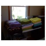 Clayton Marcus Sofa, 2 Disc Chairs, Bunching Tables, Brass Lamps, Flat Screen T V (New), Floor Lamp, Rocker, T V Trays, Vacuum, Cherry China Cabinet, End Table, Cherry Extension Table w /4 Leaves & Pads, Stereo, Usual Glassware, Recliner, Sofa, Desk & Chair, Mid Modern Bedroom Suite, Full Size Bed, Serta Mattress, Dresser, Mirror, Night Stand & Chest Of Drawers, Bedding, Linens, Towels, Cherry Double Dresser, Double Bed, Night Stand, Serta Memory Foam Mattress, Chest Of Drawers, Usual Kitchen, Round Oak Table & 4 Chairs, Kitchen Appliances, Kenmore Washer & Dryer (Gas), Vintage Gas Range & Crosley Refrigerator, Freezer, Reverie Ware, Lane Cedar Chests, Cedar Chest, Tools, Shop Vac, Exercise Bike, Shelving, Luggage, 1940 Table w /6 Chairs & China Cabinet, Aluminum Extension Ladder, Much Misc.