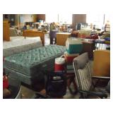 Troy- B ilt Rototiller, 2 Bikes, Ladders, Hose Cart, Troy- B ilt Lawn Mower, Lawn Tools, Safe, Push Mower, Totes, Camping Tents, Fencing, Jewelry Making Tools & Equipment, Ryobi Power Tools, Makita Power Tools, Chain Saw, Air Pump, Pet Supplies, Hand Tools, Paints, Goldstar Refrigerator, Mirrors, Treadmill, Pilates Apparatus, Jewelry Display Items, Cookbooks, C D ’s, D VD ’s. V HS ’s. Turntable, Printer, Cash Register, Portable D VD Player, Wii & Games, Light Fixtures & Lamps, Eden PURE , Vacuum, Shelving, Holiday, Sportcraft Pool Table, Small Kitchen Appliances, Storage Containers, Pots & Pans, Usual Kitchen, Gold Plated Flatware, Picture Frames, Luggage, Leaded Glass, Lamps, Linens, Everything For Entertaining, 2 Sets Of China, Crystal, Glasses, Toys, Games, Fisher Price Puzzles, Darts, Hot Wheels, Action Figures, Nerf, Train, Clothes, Bedding, Bench, 2 Twin Bed, 1 Full Size Sleep Number Mattress Only, Queen Size Oak Bed, Picnic Coolers, Patio Furniture, Patio Tables & Umbrellas, Kitchen Carts, Desk Chairs, Recliner, Love Seat, Leather Sofa, Coffee Tables, End Tables, Patio Bar, Bar Stools, Dining Room Table, Cherry Entertainment Center, Filing Cabinet, Dressers, Wooden Extension Ladder, Much Misc.