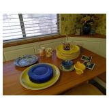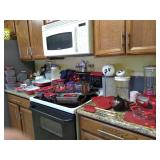 Lots of furniture, fun kitchen goodies! There are couches, bedroom sets, glass hutches, clocks, dinning table, lamps, office desk and file cabinet, Christmas villages, Halloween villages, memorabilia, linens, so much more to see.