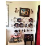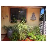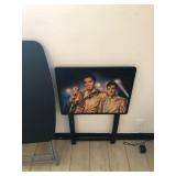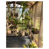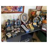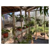 LEATHER SOFA & 2 CHAIRS, QUEEN BEDROOM SET, TV CONSOLE, ELVIS & CORVETTE MEMOTABILIA COLLECTION, TV, GUITAR, 5 PIECE DINING SET, METAL ETEGERE, COFFEE & END TABLE SET, WALL ART, MIRRORS, SOFA, POTTED PLANTS, ORCHIDS, YARD TOOLS, 2 FOUNTAINS, STAINED GLASS PANELS, BOOKCASES, BIRD BATH, YARD ART, NICE TOOLS, METAL & WOOD WORK BENCHES, WIND CHIMES, LINEND & KITCHENWARE |