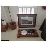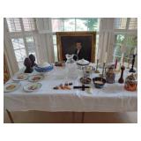 REMAINING AND ALL AT 50% OFF RARE FINE ANTIQUE CLOCKS INCLUDING FINE GRANDFATHER CLOCK TO INCLUDE: Very Rare 200 + year old hand painted Scottish grandfather clock. Seth Thomas Antique Wall clock. RARE ANTIQUE & MID CENTURY MODERN FURNITURE TO INCLUDE: Mid-century Modern coffee table. Chrome framed w glass MCM coffee table. White linen sculptured sofa. Antique long low hand carved wooden bench. Antique drop leaf table, circa 18s rare hutch, home office, directors chairs. VERY VALUABLE POSTER FROM THE HIGH MUSEUM. RARE POSTERS AND FINE OIL PAINTINGS TO INCLUDE: