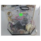Lighted Plastic Jewelry Display Case With Costume Jewelry