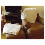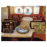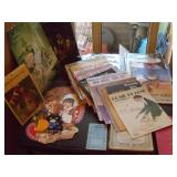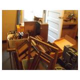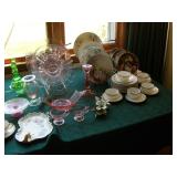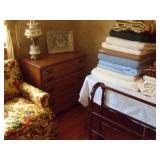 Sofa, 3 Jamestown Lounge Chairs, Chair & Ottoman, Recliner, Glass Top Coffee Table & End Tables, 3 Cherry Display Cabinets, Floor Lamps & Table Lamps, Crawford Maple Drop Leaf Dining Table & 6 Chairs, Open Hutch, Flat Screen T V , T V Stands, Jenny Lind Bed 3/4 Size Equipped, Jamestown Sterling Oak Dresser, Filing Cabinet, Jewelry Chest, Small Desk, Flexsteel Love Seat, 2- C rawford 4- Drawer Chests, Fenton Lamps, Corner What Not Shelf, Jewelry, Linens, Vintage Linens, Bedding, China, Glassware, Artglass, Silverplate Flatware, Some Sterling Pieces, Collector Hibel Plates, Cut Glass, Early Pressed Glass, Crawford Full Size Bed Equipped, Console & Mirror, Clothes, Several Occasional Chairs, 2 Kitchen Booths, One Table, Refrigerator, Electric Flare Range (Two Ovens), Microwave Oven, Prints, Paintings, Quilts, Early Books, Complete Collection Of Victor Hugo’s Works -Some First Editions, Fountain Pen Collection, Lucy Memorabilia, T V ’s, V HS ’s, 45’s, 8 Tracks, casettes, Yard Ornaments, Tools, G E Washer, Whirlpool Electric Dryer, Lawn Chairs & Tables, Christmas, Early Hallmark Ornaments, Mid Modern China Cabinet & Server, Early Movie Projector & Cameras, Pottery - Weller, Mc C oy, & U SA , Card Tables & Chairs, 96 Ft Of Oak Crown Molding, Much Misc. Special: Antique Bow Front Corner China Cabinet (Rare). |