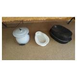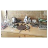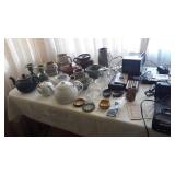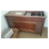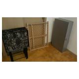 Lovely antique furniture in excellent condition, vintage Magnavox stereo cabinet in working condition and a few LP's and 78's, vintage kitchen items, vintage colored glass items, used vacuum cleaners, vintage prints and a small painting, some retro fabric pieces and some vintage ladies clothing items, new? large dehumidifier, garage items, great large wooden ladder, used coolers, folding patio chairs, rolling kitchen island with butcher block top, vintage mahogany full size headboard and foot board with sideboards and wooden slats, vintage transistor radio and vintage portable television, cassette player/recorder, Harmen Karden speakers, pottery items, small crock, antique? bed pan, child/pet gates, and more! |