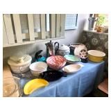 Cuddletown Friends Life Size Stuffed Gorilla, Vintage Little Tykes Party Kitchen with Imitation Pyrex and Food, Vintage Wood Doll Crib and Playpen, Vintage Little Tykes Fridge with Prep Station, Vintage Raggedy Ann Doll, Vintage Wooden Doll Highchair, Vintage Fisher Price Corn Popper, Vintage Fisher Price Chicken Push/Pull Toy, Vintage Fisher Price Ride On Toy, Flexi Blocks, HAPE Watering Can, 1966 Roly Poly Chime Ball, Vintage Lincoln Logs, Plastic Figurines, Laramie Figurines, 1962 Fisher Price Push/Pull Turtle, Harry Potter Books Written in German, Dr. Seuss Books, Sturdy Wooden Childs School Desk with Chair, Vintage Fisher Price Push/Pull Raccoon, Little Tykes Table and 2 Chairs, 1962 Infant Seat Carrier, and SO MUCH MORE Holiday Decor Hallmark Ornaments, Harley Davidson Ornaments, Hockey Football Basketball and Baseball Ornaments, Vintage and Modern Halloween Decor, Christmas Decor by Jim Shore, Martin Renteria, Paper Mache Nativity, Hand Quilted Decor, Christmas Wreaths, Fontanini Figurines, Paper Mache Tree Toppers, Signed Avery Richards Jesus Christ Sun Catcher and SO MUCH MORE! Kitchen Wares Antique Brass Steam Iron, Tea Pots and Accessories, Chicken and Rooster Decor, Aloe Plant, Chicago Cutlery, Lenox Crystal Drinking Glasses, Hall Egg, Dish Pitcher, and Hors D'ouevre, Royal Dalton Tableware, Vintage Faberware Pots, Corningware, Pyrex Bakeware, Fitz and Floyd Cherub Dishware Microwave and Dishwasher Safe, Culver Cobalt and Cherub Glassware, Small Wine Racks, Noritake Chaumont, and SO MUCH MORE! Clothing, Purses, and Accessories Style and Co, Talbots, Croft and Barrow, Anne Klein, Calvin Klein, R&M Richards, Le Suit, Kasper, Studio 1, Liz Claiborne, Alfred Dunner, Leslie Fay, Great Cavalier, Evan Picone, Theme Works, Jones New York, Etienne Aigner, Frangi, Christina Italy, and SO MUCH MORE!