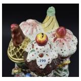 280. Fitz and Floyd Rabbit w/ Bunnies in Wicker Stroller Cookie Jar
