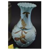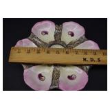 254. Rare Pattern Moire Antique Shelley Flower Frog w/ Base