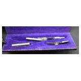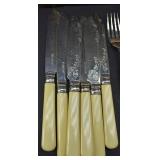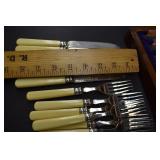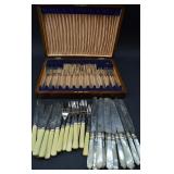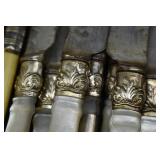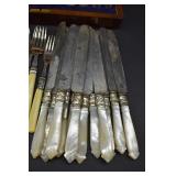 19. W.R.H. & Co. Mother of Pearl Handled Knife and Fork Set w/ Hallmarked Silver Bandings