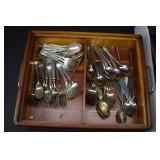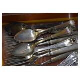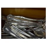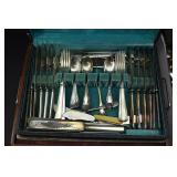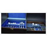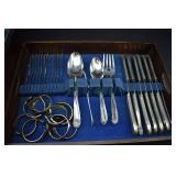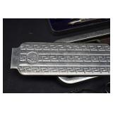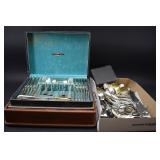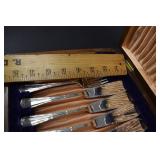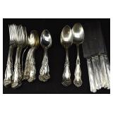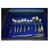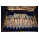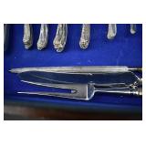 250. Eldan Nickle Silver Japan Rose Decorated Flatware In Case w/ Carving Set