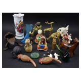 256. Assorted Small Items - Incense Burners, Celluloid Parrots, Cast Iron Frog, Etc.