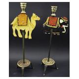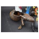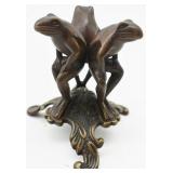 260. Cast Metal Elephant and Bronze Tiffany Frog Ball Holders