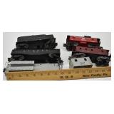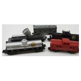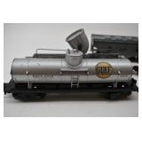 265. 5 Train Cars - Gulf Tanker, American Flyer Lines Caboose, Koppers Tanker, C&NWRY Spot Light
