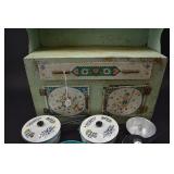 271. Vintage Childs Metal Step Back Cupboard w/ Accessories