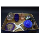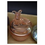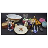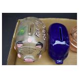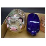 284. Art Glass Bird Lamp, Pig Banks, Powder Jar, etc.