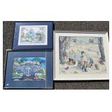 289. 3 Framed Prints - Molly Brett Snowman Scene, "Americas Wildlife" KS Lidington
