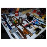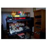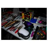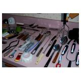 Detailed Listing : Antique Cutler Oak Roll Top Desk (Great find. Needs to have roll top fixed, otherwise in excellent condition), GARAGE: Kenmore Series 100 Washer & Dryer, Large Rolling Trash Can, Cleaning Brushes & Tools, Gardening Tools, Office Chairs, Storage Bins, Storage Organizers, Coolers, AC Filters, Step Ladders, Step Stools, Jumper Cables, Gift wrap & bags, Tissue Paper, Greeting Cards, Recycle Bin, Laundry Products, Cleaning Products, Automotive Products, Pest Control Sprays, Bleach, Large Assortment of Light Bulbs, Charcoal, Smoker Chips, Motor Oil, Tapes, Tape Guns, Stock Pot, Pipe Fittings, Sprinkler System Parts, Screen Windows & Doors, Shower Chair, Crates, Ash Trays, Paint Chemicals & Supplies, Circular Saw, Screwdrivers, Ratchet Sets, Saws, Wrenches, Wire Crimps, Wire Cutters, Clamps, Magnetic Tools, Hammers, Tennis Balls, Tennis Racquets, Roller Blades, Pliers, Grill Set, Scissors, Knee Pads, Bungee Cords, Wood Burner Sets, Dremel Tools, Soldering Gun & Supplies, Glue Guns, Staple Gun, Hammer Drill, Router, Coping Saw, Crow Bars, Tons of Screws, Nails, Bolts, Nuts & Various Other Hardware, Tape Measures, Pipe Wrench, Sledge Hammer, Pencil Sharpeners, Extension Cords, Door Knob Sets, Surge Protectors, Black & Decker Hand Vac, Staplers, Rulers, Moving Blankets, Brooms, Shovels, Mop, Rakes, Hoes, Axe, Work Lights, Work Gloves, Funnels, Metal Files, Caulk Gun, Craftsman Table Saw, Yard Sticks, Central 150PSI Pneumatic Air Compressor (Like New), Craftsman Belt Sander, Schumacher Battery Charger & Engine Starter, Bench Vise, AJ Tools Pit Bull 16 Speed Drill Press, Oil Cans, Binders, Jars, Wire, Wood Scrap, Bricks, Wall Mirror, Work Buckets, MAIN BEDROOM: 3 Tier Shelf, Cutler Roll Top Desk, TV Cabinet, Antique Oak Wash Stand, Graph Paper, Desk Lamps, Table Lamps, Clip Lamps, Emerson 32”? Flat Screen TV, Waste Basket, Queen Bed, Speakers, Office Desk, Brother TA-210 Series Fax/Copier/Printer, Brother MFC-8890DW Scan/Fax/Printer, Toner Cartridges, Wireless Modem & Router, Automotive Prints, BATHROOM: Tons of Bathroom Products including Soaps, Perfumes, Bandaids, Rubbing Alcohol, and Toilet Paper, KITCHEN: Towels, Wall Shelves, Dust Pans, Framed Art, Stainless Steel Trash Can, Spice Rack, Old Whirlpool Stove, Old Kenmore Dishwasher, Whirlpool Stainless Steel Side by Side Refrigerator, Vintage One Drawer Shelf, Office Chair, Tons of Kitchen Utensils, Plates, Cups, Mugs, etc, Food Products, Cheese Grater, KitchenAid Coffee Maker, Toaster, Bagel Toaster, Electric Can Opener, Knife Sets, Kitchen Timers, Ziploc Bags, Pitchers, Butter Dishes, Salt & Pepper Shakers, Strainers, Measuring Cups & Spoons, Bakeware, Pots, Pans, Skillets, Stanley Thermos, Spices, Napkins, Plastic Utensils, Paper Plates & Solo Cups, Vases, Ice Buckets, Osterizer Blender, Mixing Bowls, Electric Grill Plate, DINING & LIVING ROOM: Kitchen Table w/ Six Chairs, Book Shelf, Display Cabinet, CDs, CD Stand, CD Cases, Element 40”+ Flat Screen TV, Bubble Mailers, Catalog Envelopes, Calendars, Magazines, Kenwood A/V Receiver, Samsung BluRay Disc Player, Admiral 5 Disc CD Changer, Optimus Floor Speakers, Vintage Army Dress Blue Uniform & Accessories, Army Jacket, Coffee Table, Sofas, Mantle Clock, Beer Steins, Oriental Art, Tons of Cords, Phones, Chargers, A/V, Mics, Headphones, etc., Baby Cradle, Large Area Rug, Night Stands, End Tables, Silver Plated Flatware, Shells, Candles, Baskets, Picture Frames, TV Trays, Oil Lamp, Glassware, Block Crystal, Umbrellas, Eureka Vacuum Cleaner, Occasional Tables, Projection Screen, Vintage Rolodexes, Vintage Tupperware, Plastic Containers, Apron, Pottery, Knives, Silverware, Koozies & Water Bottles, Tissues, Antique Empire Shelf, Books, Craft & Sewing Supplies, Dog Biscuits, Wine Rack, UPSTAIRS: Wine Rack, Futon, Computer Desk, File Cabinet, Vintage Oak Office Chair, Storage Cube Seat, Automobile Motif Oils on Canvas Prints, Canon & Nikon Cameras & Supplies, Tons of Office Supplies including Envelopes, Pens, Pencils, Organizers, Hole Punches, Files, Paper, and more, Men’s Clothing including Shirts, Jeans, Slacks, Shorts, T-Shirts, Underwear, Socks, Hats, Gloves, Suits, Ties, Suspenders and Shoes, Bow Ties & Accessories, Wire Metal Vanity Stool, Bags, Empire Chest of Drawers, Faux Stone Plant Stands, Luggage Rack, Luggage, Wood Shelves, Plant Stands, Book Cases, Clip Boards, Wicker Chest, 16 Cube Shelf Unit, Oak Drop Leaf Table, Vintage Art Deco Chest of Drawers, Bed Sheets, Towels, Pillow Case, Blankets, Other Linens, GARAGE CONT: Concrete Angel Statue, Weber Megamaster Grill/Smoker, Paint, Schwinn Bicycle, AND MUCH MORE NOT LISTED!!!!