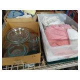 Bx lots with Linens, Kitchen items, house hold items