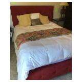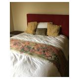 red queen upholstered headboard and mattress