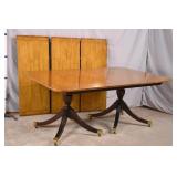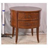 Ethan Allen round inlaid mahogany 2 drawer side table; 68-115 - brass toe caps - finished on all sides - 26x26x26.5