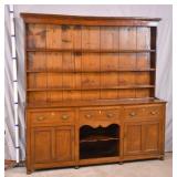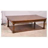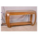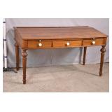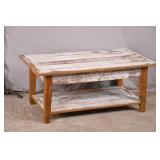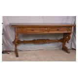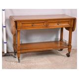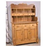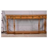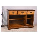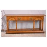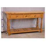 Pine 2 tier 3 drawer sideboard; 68-116 - turned columns - distressed "barn wood" shelf - 66.5x18x36
