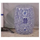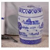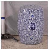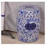Blue and white Oriental style porcelain garden seat; 1063-004 - 12x12x18