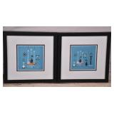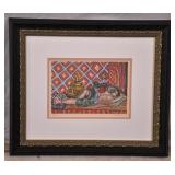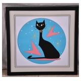 Framed artist proof print "Atomic Cat - Blue" by Ivy Lowe; 975-395 - artist signed and marked AP - black frame - 21x20.5