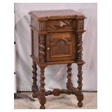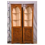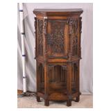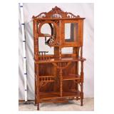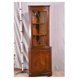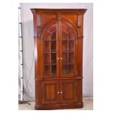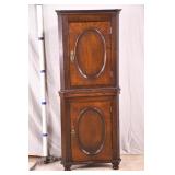 Small oak 2 door corner cabinet; 68-109 - serpentine front shelves - 23x12x57