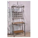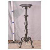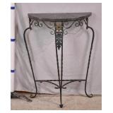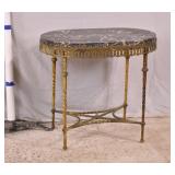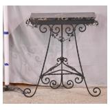 Ornate iron base side table with marble top; 68-180 - twisted legs - stretcher base - 24.5x16.5x22.5