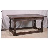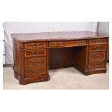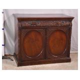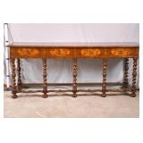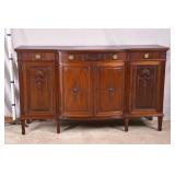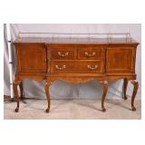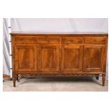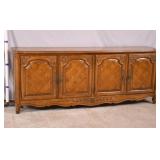 Thomasville carved oak French style sideboard; 68-121 - raised panel doors and sides - fitted interior - inlaid/parquet top and doors - 81.5x18.5x32.5